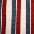 This bold striped fabric features a timeless combination of deep red, navy blue, and warm ivory arranged in clean vertical bands. The strong contrast between the rich, saturated colors and the soft neutral ground creates a striking yet balanced look that feels both traditional and versatile. The vertical stripe layout naturally adds a sense of height and structure, making it especially effective for upholstery and window treatments where clean lines and visual elongation are desired. The subtle texture within each stripe gives the fabric added depth, lending a slightly tailored, woven appearance rather than a flat finish.