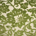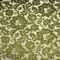 This graceful floral fabric features an allover pattern of blooming flowers and scrolling vines rendered in a rich leafy green against a soft ivory background. The design blends stylized blossoms with gently curving stems and delicate foliage, creating a harmonious and flowing composition. The tonal contrast allows the intricate floral shapes to stand out while maintaining a soothing, natural feel. Subtle texture within the green motif adds dimension, giving the fabric a slightly woven, organic character that enhances its visual depth.