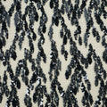 This Black Sequin Embroidered Lace features a bold and luxurious abstract wave pattern, crafted with dense black sequins that create a stunning contrast against the soft mesh base. The sequins shimmer beautifully, giving the fabric a dynamic and glamorous appeal.