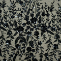Perfect for evening wear, cocktail dresses, formal gowns, and couture overlays, this fabric delivers timeless glamour with a modern edge. The contrast of dark embroidery and subtle sparkle makes it a luxurious choice for dramatic, high-fashion looks.