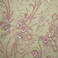 The soft blush tone makes this fabric ideal for evening gowns, bridal wear, bridesmaid dresses, and haute couture creations, where elegance and refinement are key. Its delicate sparkle and textural embellishment make it a stunning choice for designs that aim to exude grace and femininity.