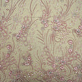 This Blush 3D Floral Beaded Lace captures a romantic and sophisticated charm. Crafted on a nude mesh base, it features intricate floral embroidery enhanced with shimmering sequins, beads, and delicate 3D flower appliqués. The arrangement of florals and flowing vines creates depth and dimension, giving the lace a luxurious, couture feel.