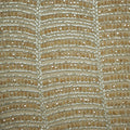 This gold linear beaded mesh lace captivates with its refined geometry and luminous elegance. Designed on a sheer champagne-toned mesh, it features intricate linear beadwork forming an abstract leaf or petal motif. The mix of clear and metallic champagne beads gives the fabric a soft, radiant sheen that enhances its sculptural pattern.