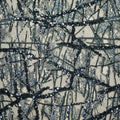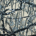 This Gunmetal Abstract Sequin Embroidered Lace offers a striking fusion of contemporary art and couture craftsmanship. Set on a soft nude mesh base, it features bold, intersecting linear embroidery in metallic gunmetal thread and sequins, creating a captivating abstract pattern reminiscent of shattered glass or modern brushstrokes. The layered textures add both visual intrigue and tactile depth.