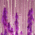 Perfect for evening gowns, performance wear, red-carpet looks, or statement fashion pieces, this fabric blends modern shimmer with textural opulence. Its vivid purple hue and feathered flourish make it ideal for designs that demand both glamour and originality.