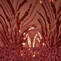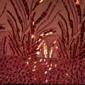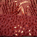 This Red Mirror Beaded Mesh Lace radiates confidence and high glamour. Set on a sheer nude mesh, it features an intricate flame-like design composed of rich red beads and reflective mirror sequins. The dense lower border transitions beautifully into flowing, upward patterns that shimmer dramatically under light.