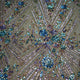 Breathe life into your designs with the Sage Stardust Garden Sequin Embroidered Mesh Fabric, a luxurious textile blooming with sparkling floral artistry. Delicate sage green, blush pink, silver, and soft black sequins form intricate blossoms and foliage, embroidered precisely onto a sheer mesh base. Gold and rose-toned sequin rays burst outward like beams of sunlight, creating a radiant, starburst effect that brings dynamic movement and elegance to the surface.