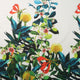 Multicolored Floral on Blue...Green Monstera Leaves on White Printed Polyester Mikado Fabric