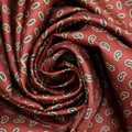 Crafted from luxurious jacquard fibers, this lining offers a silky hand feel, smooth drape, and lasting durability. Perfect for bespoke suits, blazers, or vests, it adds an elegant contrast that enhances any garment's comfort and visual interest. The warm maroon hue paired with the intricate paisley pattern makes this fabric an exceptional choice for those seeking a statement interior lining with timeless character.