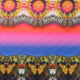 Multicolored Feathers on Ra...Multicolored Feathers on Rainbow Printed Polyester Mikado Fabric