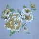 Aqua Periwinkle Florals on ...Pink Mauve and Green on Off White Background Printed Silk Organza Fabric