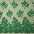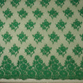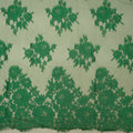 Discover the refined elegance of this 3.5-yard piece of Green Floral Double Scallop Chantilly Lace, a luxurious fabric that elevates any garment or special project. Its delicate floral motifs are intricately woven into a soft, lightweight lace, offering a graceful drape and a touch of ethereal beauty. The rich green hue adds a fresh, sophisticated charm, making it a standout choice for both modern and classic designs.
