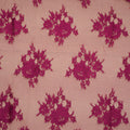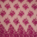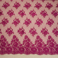 Magenta Floral Double Scallop Chantilly Lace is a captivating fabric that combines artistry and luxury in one exquisite design. Showcasing an intricate floral pattern delicately woven onto a soft, sheer tulle base, this lace exudes sophistication and romance. The bold magenta hue makes a striking statement while maintaining an elegant, refined aesthetic, perfect for creating couture gowns, evening wear, or special occasion pieces that stand out with timeless grace.