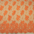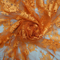3.50 Yards Piece Burnt Orange Scattered Floral Lace on Sheer Mesh is a warm, earthy fabric that brings effortless charm to any design. Featuring delicately embroidered floral motifs scattered across a soft, sheer mesh base, this lace offers a subtle yet striking look. The rich burnt orange adds a touch of autumnal warmth, making it ideal for seasonal styles or projects that call for a bold, natural palette. The scattered placement of the floral designs allows for plenty of negative space, giving the fabric a light, airy feel with an elegant modern edge.