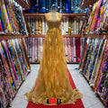 The Golden Yellow Floral Double Scallop Chantilly Lace radiates warmth and sophistication with its intricate floral pattern delicately woven on a fine Chantilly base. Designed with exquisite craftsmanship, the lace features graceful floral motifs throughout and elegant dual scalloped edges, offering both balance and timeless charm. The golden yellow hue enhances its luxurious appeal, adding a touch of opulence to any design.