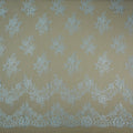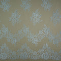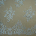 Bring effortless elegance and shimmer to your designs with this 3.30-yard Silver Floral Chantilly Lace piece. Delicately crafted with an intricate floral motif on sheer mesh, this lace features double scalloped edges that add a soft, romantic finish. The shimmering silver tone gives it a refined, luminous quality, perfect for special occasion pieces that demand attention.