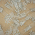 Crafted from fine embroidery threads on soft tulle, this fabric offers both structure and fluidity, making it perfect for bridal gowns, veils, evening bodices, and couture overlays. The silver tone lends a modern, luxurious finish, complementing both classic white and pastel underlayers for a sophisticated layered look.
