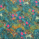 Beige and Aqua Floral Polyester Print Fabric