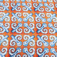 Blue Background with Green Leaves and Multicolored Floral Printed Fabric