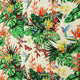 Ivory Background with Green Leaves and Blue Butterflies Printed Fabric