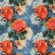 Orange, Yellow and White Flowers on Blue Background Charmeuse Polyester Fabric