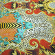 Red Floral with Grey and Black Geometric Background Crepe Polyester Fabric