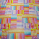 Multicolored Geometric with...Orange and Bronze Patches on Black Background Printed Silk Charmeuse Fabric