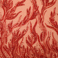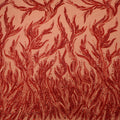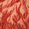 Crimson Red Beaded Wave Pattern with Bugle Beads Embroidered Tulle Fabric